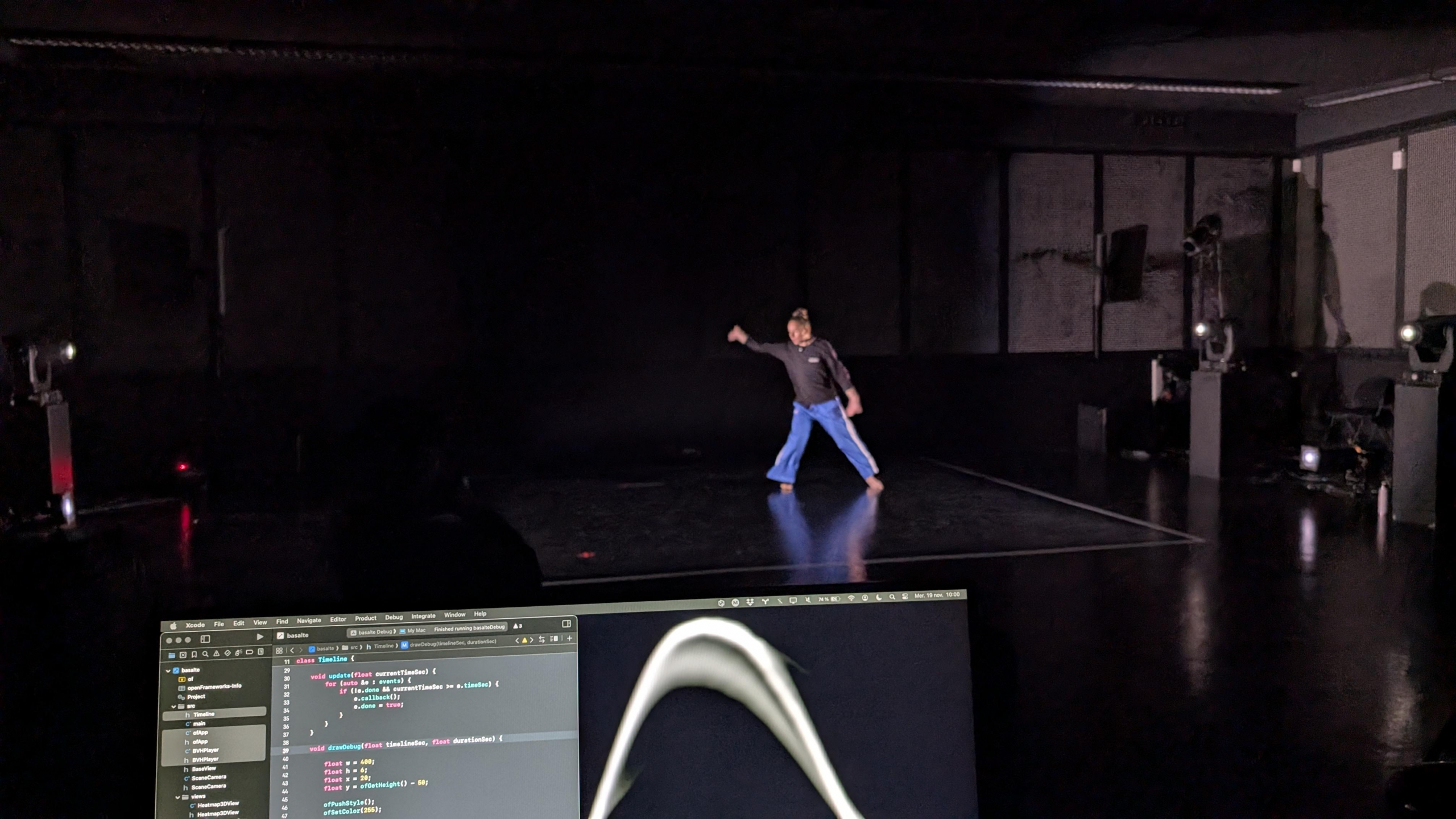 - deux installations audio-visuelles impliquant des mesures de distances entre personne sur une scène de 20m x 20m via un système de caméra optique/profondeur et un système de machine learning / Max 8 / custom frameworks